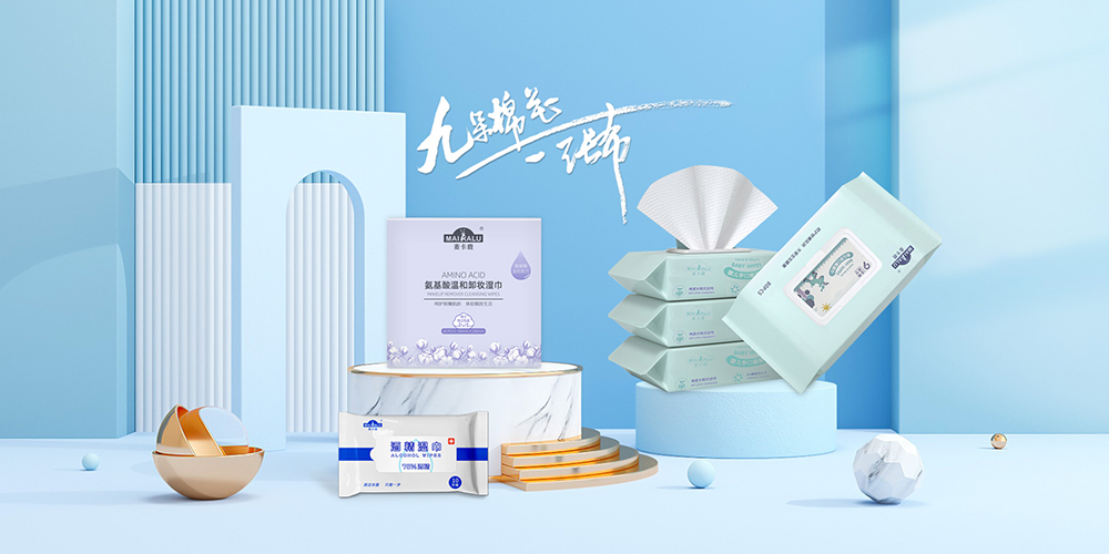 廠區(qū)占地8000平,擁有2個GMP十萬級無塵車間、EDI七級純水過濾系統(tǒng)和臭氧殺菌系統(tǒng),配備50余條全自動濕巾、棉柔巾、柔巾卷等系列生產(chǎn)線,日產(chǎn)能可高達100萬包。